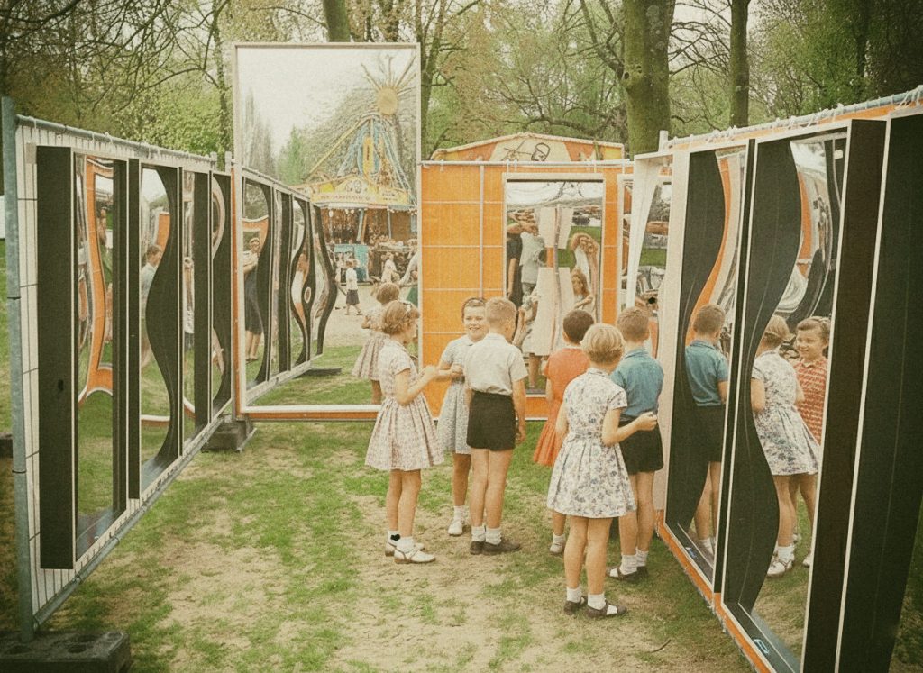 La atracción de espejos es una de las paradas más divertidas y desconcertantes de cualquier feria. Es una experiencia sencilla pero atemporal, diseñada para hacer que los visitantes se rían de sí mismos y de la realidad distorsionada.