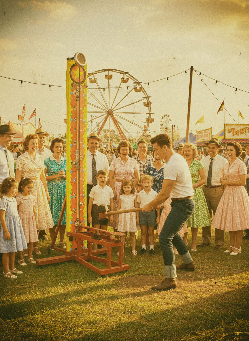 El Martillo de Feria es más que un juego; es una medida de orgullo y un punto de reunión que genera risas, gritos de ánimo y el satisfactorio sonido de la campana que sella el éxito.
